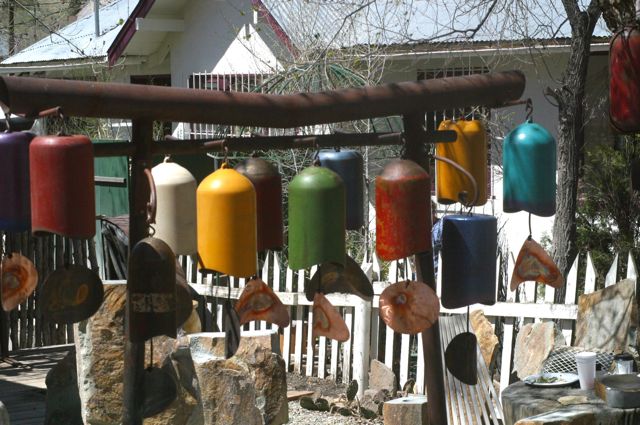 These beautiful wind gongs by Bill Lloyd, made of recycled oxygen tanks, can be found at the Range West Stone Gallery in Madrid.