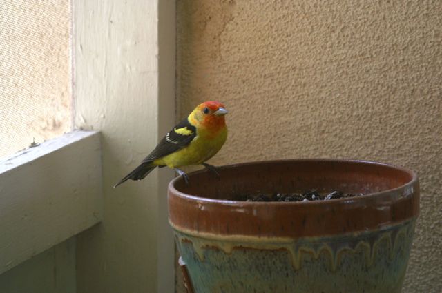 It was a strange day of wildlife at the Live Clay residence. I also found this beautiful finch on my porch
