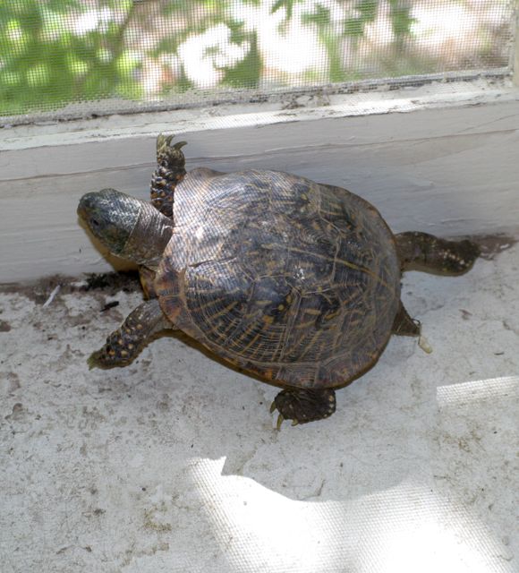 Mavis is the largest Woodhouse’s Toads I’ve ever seen. She’s one of several that call our pond Home, having appeared from I don’t know where soon after I built it. I’d heard rumors that Mavis had been burrowing in someone else’s yard, but chose not to believe it. Why would she? It’s not like any of my neighbors have the variety of terrain and insects found in my yard, let alone a pond! “I think your toad has a new home under our playhouse…” Yeah, right, I thought. But when Mavis failed to appear in the pond night after night, I finally reconciled with the fact that perhaps she had found another environment that met her needs better than mine (hard to believe). But this morning… guess who was back?! Ah, yes, the grass always seems greener. But not this time.