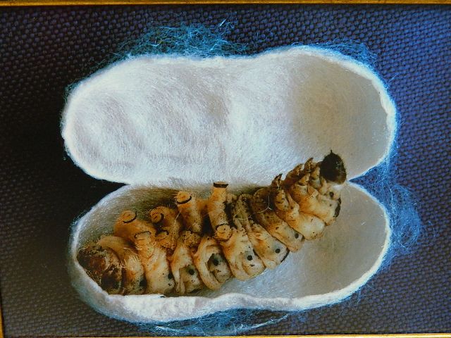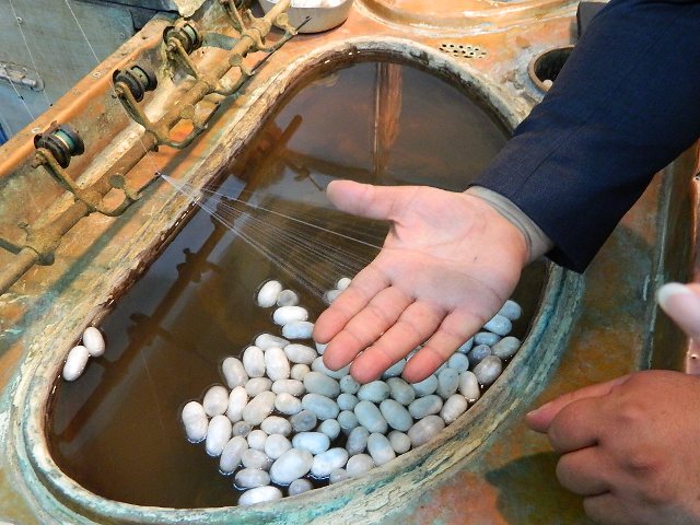 Silk is the second strongest naturally-occurring fiber, with spider web being the first. Each cocoon spun by a silk worm is a single strand, approximately one and a half miles long (!). To harvest the silk, the cocoons are boiled with the worm inside; if the worm were taken out first, the strand would be broken.