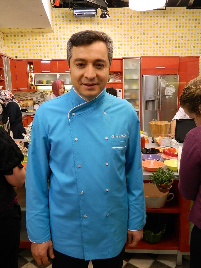 We visited a Turkish TV and radio station today (Samanyolu) and were lucky enough to meet Turkey’s most famous chef, Oktay Aymelek. He posed for pictures and showed us the herb garden that’s grown on set, with a tiny fish pond just below it. When it came time for Q & A, I asked if he could spend a few hours showing me how to make Turkish Delight for my friend (assuming all the ingredients were extra fresh), but he said no. 😦