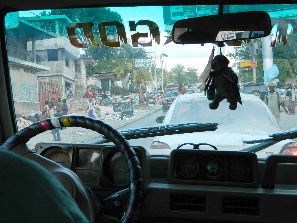 Aly met us at the airport with a car and driver, Jean-Claude, who is also Aly’s childhood friend. The five of us piled into Jean-Claude’s Mitsubishi and headed out to see some sights in PaP (estimated population of metropolitan area = 3 million, nearly half the country’s total population). Driving in Haiti is complete mayhem: no traffic laws, no signs, no speed limits, very few stop lights. First impression: people and more people stuffed into cars, motorcycles, trucks, women carrying bundles high on their heads, street vendors selling every imaginable thing, and the occasional dog or pig, all negotiating for space, all vibrating against a backdrop of high heat, humidity, diesel fumes, noise and urban detritus. Just when I was sure we were going to hit one or five people, the flow of chaos moved around us and we continued on.
