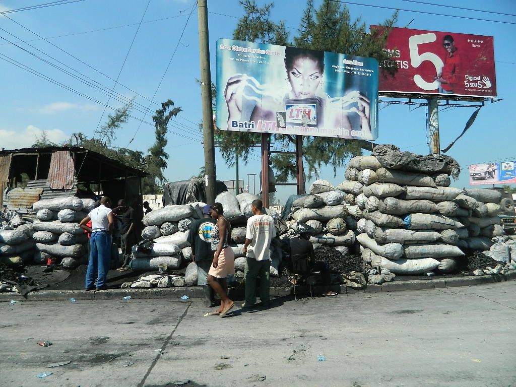 The main reason for deforestation in Haiti is that trees are the only source of fuel. Trees are cut down and brought to large fire pits where they’re converted into charcoal. It takes about 50 trees to make one of these bags of charcoal.