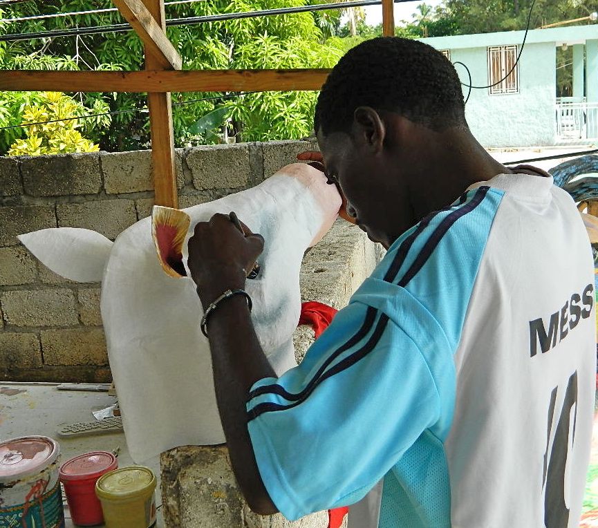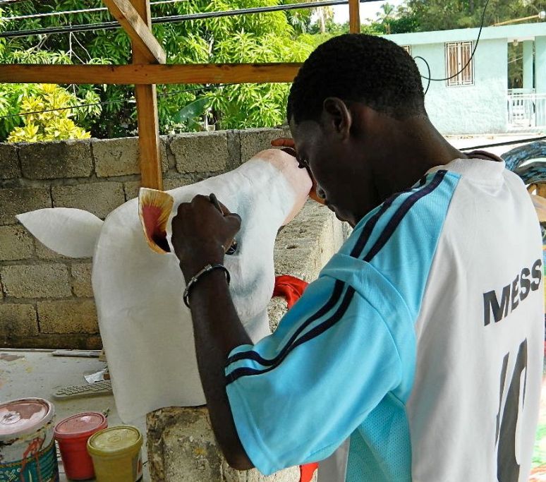 The art of papier-mache was originally brought to Haiti in the mid-1800s by the French to make home decor items, and was later used to make masks. According to the artists we talked to, a Haitian artist later went to Germany to study their method of papier-mache and brought back the new skills to Haiti. It has only recently been created for the tourist market. The man above (unfortunately didn’t get his name) is one of the last of the first generation of artists to start making papier-mache for sale (as opposed to personal use).