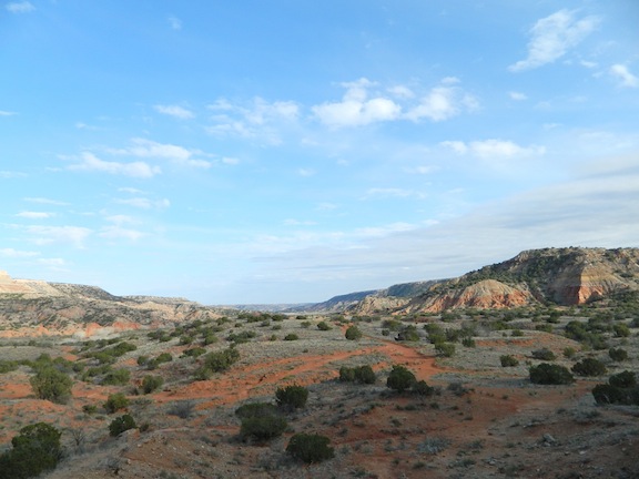 In the next post, I’ll continue the story of the Comanche and their transformation into the most powerful Indian tribe in American history, along with the history of the horse in the West and their incredible relationship to the Comanche. As for the park visit yesterday, I must say that it was amazing. I have always loved the contradictory subtle + stark, colorful palette of the West; the reddish-brown, yellow and gypsum-laced sandstone of Palo Duro, carved out by wind and water over thousands of years, was a spectacular vision. Georgia O’Keeffe, who lived and worked in Amarillo and Canyon in the early 1900’s, described, “It is a burning, seething cauldron, filled with dramatic light and color.” She must have been there in the summer. It was perfect yesterday.