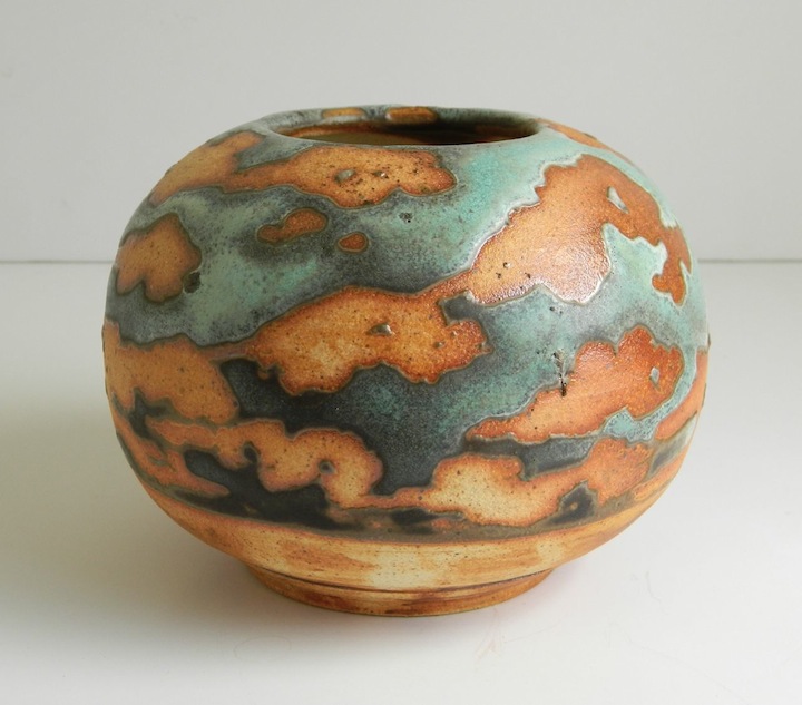 Turquoise Sky Vase, 9″ h x 10″ w, wood-fired to cone 10