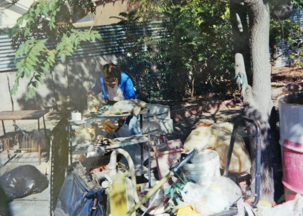 Every inch of the house, basement, garage, tin shed, and back yard was packed with stuff ranging from useless flea market junk, to knickknacks and vintage, to animal droppings of indeterminate origin.  After Petra’s family hauled away approximately 13 truckloads of her more personal effects (destined for her three storage units), the remaining detritus filled four 30′ dumpsters.
