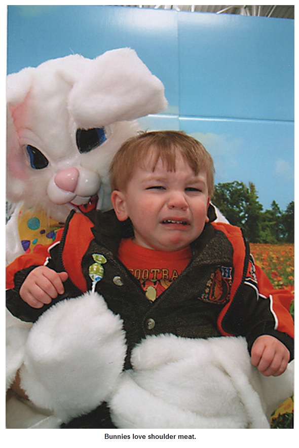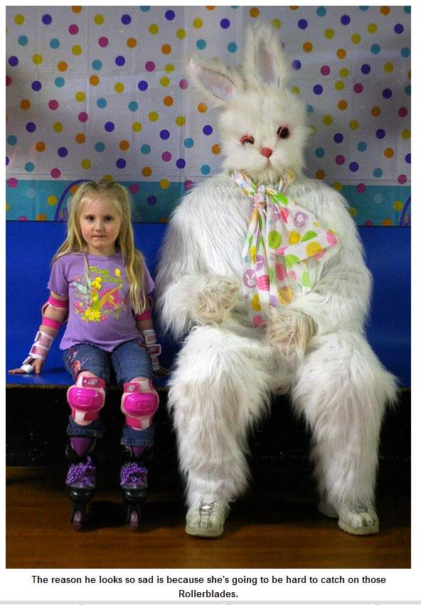 I came across this on happyplace.com and thought it was hilarious. I took none of the pictures and wrote none of the captions, but I did lovingly choose my favorites for you. Happy Easter.