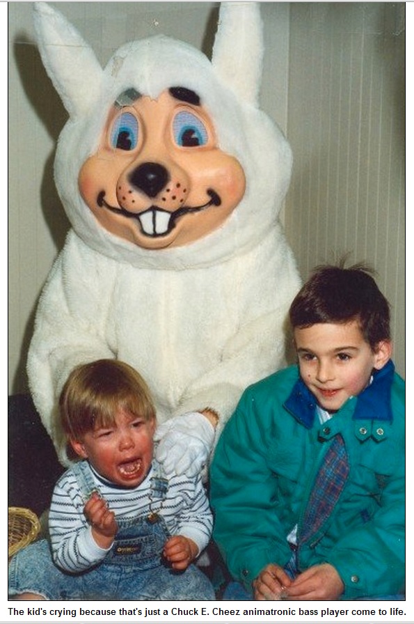 As hard as shopping malls try to make “going to see the Easter Bunny” a thing, it’s never quite caught on like visiting Santa Claus. Maybe that’s because Christmas is a magical celebration of materialistic greed and gluttony while the closest thing to “fun” about Easter is showing off your new pair of church slacks — or maybe it’s because every Easter Bunny costume is a walking nightmare of soul-scarring horror. Here are some examples of why the image of a bleeding, emaciated guy on a cross rising from the grave is somehow not the most traumatizing thing about this holiday.