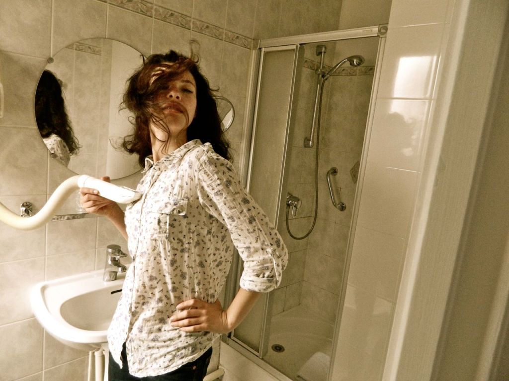 June 7: Isabella discovers a French hair dryer. Hotel Nadaud, Paris.