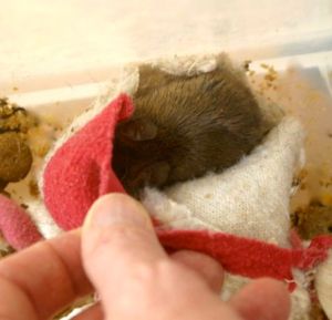 After regaining my senses at work, I analyzed the situation and came up with a brilliant idea for a homemade trap: I would put the babies in a long, cardboard wrapping-paper tube sealed at one end. The mother would surely come into the tube to care for the babies and I would simply lift the tube to catch all three. Perfect! So, I went home and did just that, gently lifting the two babies with a plastic teaspoon and placing them with some chair fluff in the cardboard tube. I left the room. Two hours later I came back, quickly lifted the tube and looked to the bottom, but it was empty — no babies, no mother. In a panic, I searched the area and soon found them… in the nest. The mother had simply gone into the trap, taken her babies, and put them back.