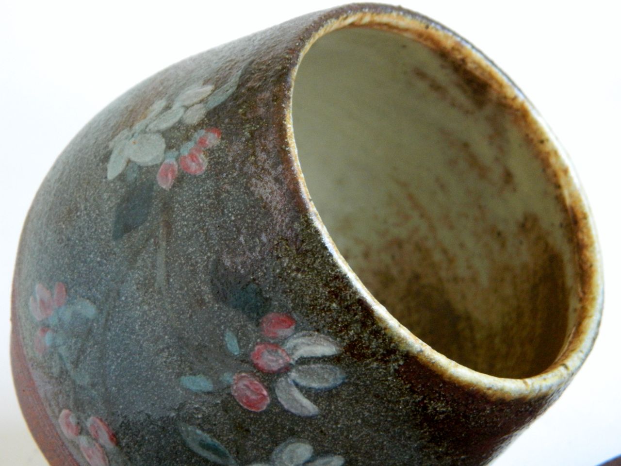 Flower Bowl, 4″ h x 3.5″ w, hand-painted and wood-fired to cone 10