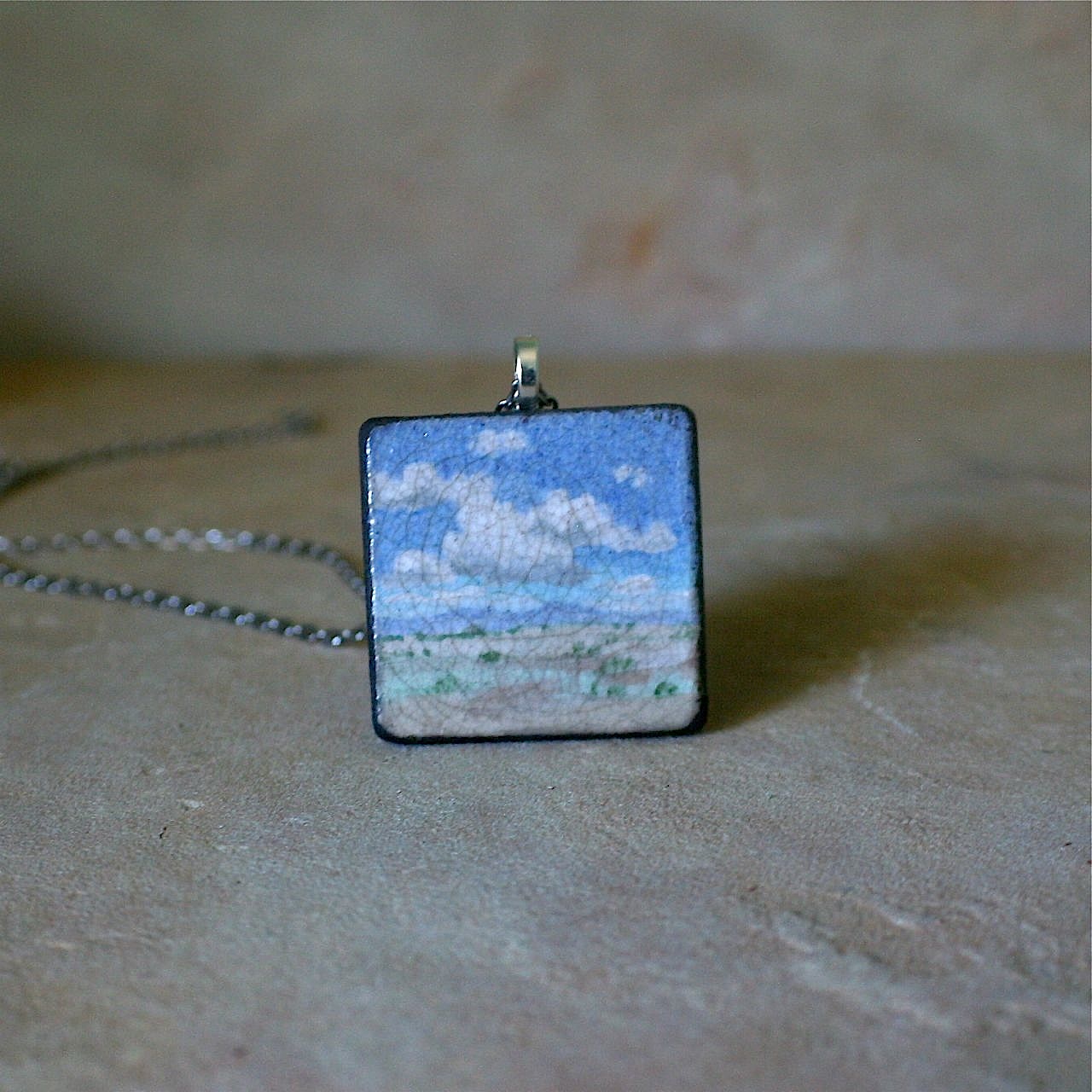 Miniature Landscape Pendant, 1.5″ x 1.5″, raku fired stoneware