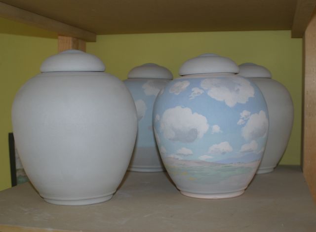 greenware urns being painted